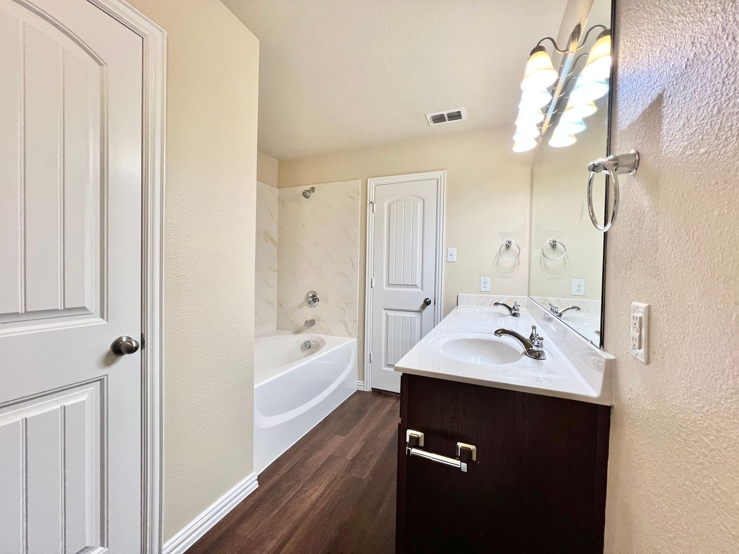 Experience a new level of sophistication in this stunning property. The open floor plan seamlessly blends the living, dining, and kitchen spaces, creating a perfect environment for both relaxation and entertaining. The kitchen is a chef's dream, featuring ample cabinetry, a sleek island, and a pantry for extra storage. The three generously sized bedrooms offer a tranquil retreat, with the master bath highlighting a convenient double sink, large linen closet and walk in closet. A spacious one-car garage provides ample room for your vehicle, while the fenced backyard offers privacy for outdoor activities.