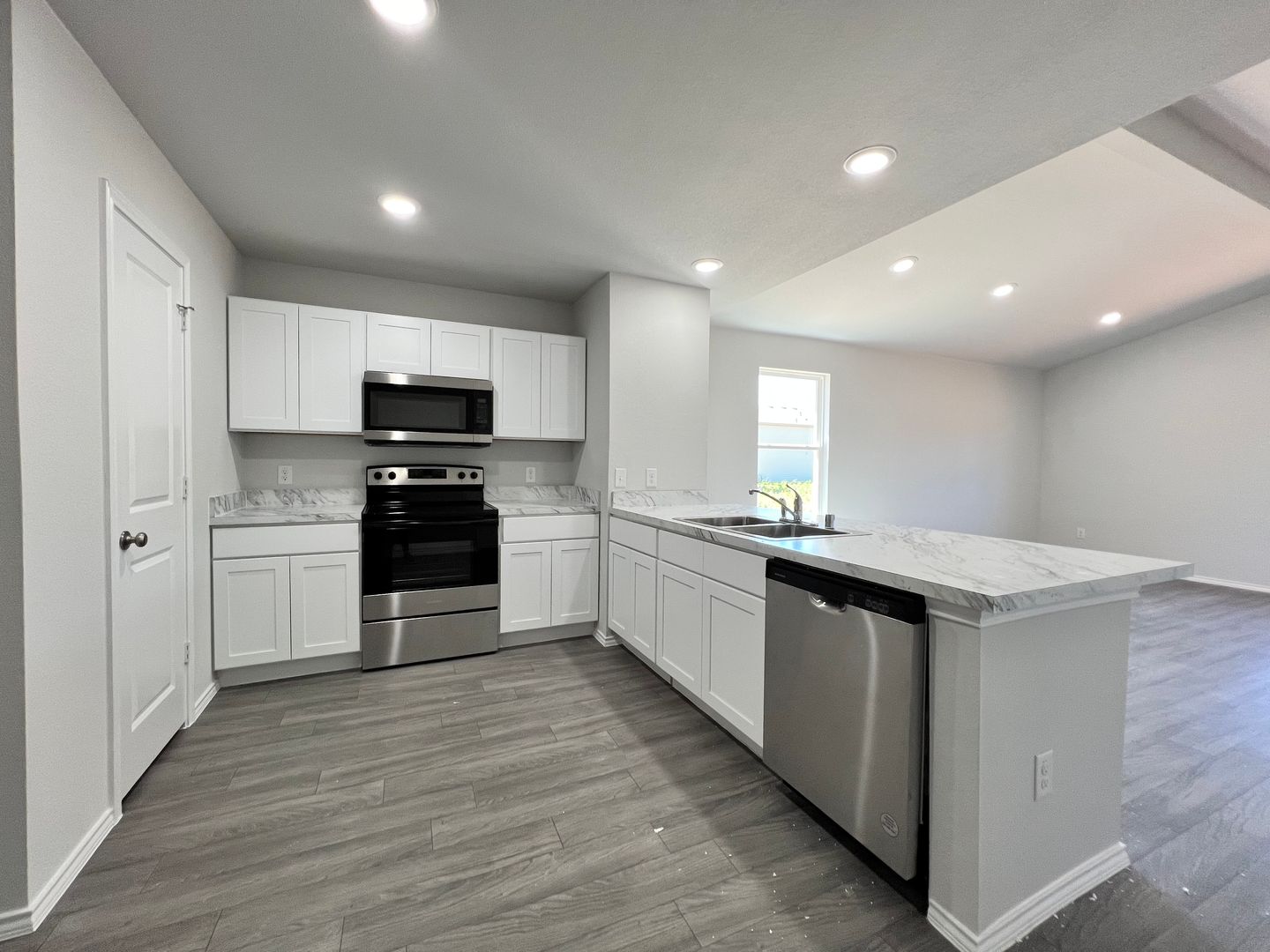 Available NOW! The Lincoln Plan from our Liberty Series offers the perfect combination of efficiency, comfort, and value. This single-story home features 4 bedrooms, 2 bathrooms, a 2-car garage, and 1,510 square feet of thoughtfully designed living space. Upon entering, you’ll find three secondary bedrooms, a full-size bathroom, and a conveniently located laundry room. The heart of the home is the open-concept kitchen, which overlooks the dining area and spacious family room, making it perfect for hosting or everyday living.Toward the back of the home, the primary suite provides a private retreat, complete with an en suite bathroom. Access to the primary suite is conveniently located just off the living room, ensuring privacy and easy access.