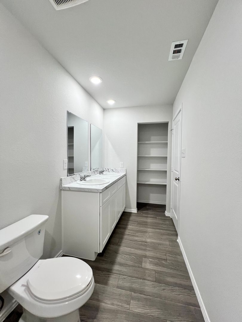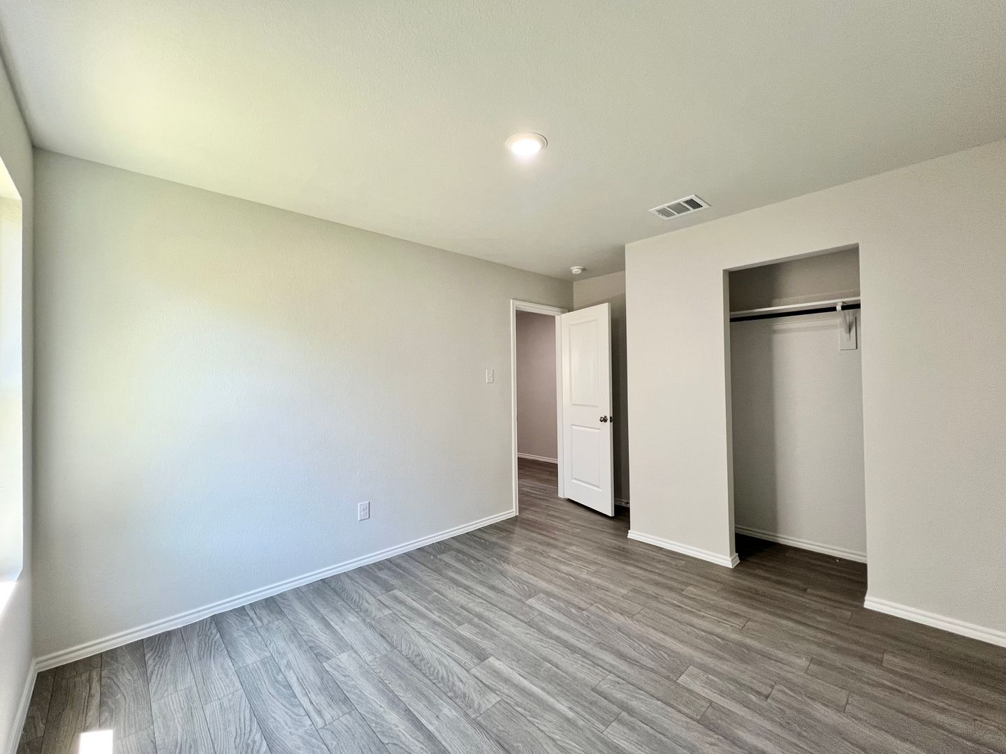 Tucked away for added tranquility, the private primary suite offers a peaceful retreat with a large walk-in closet and en suite bathroom.