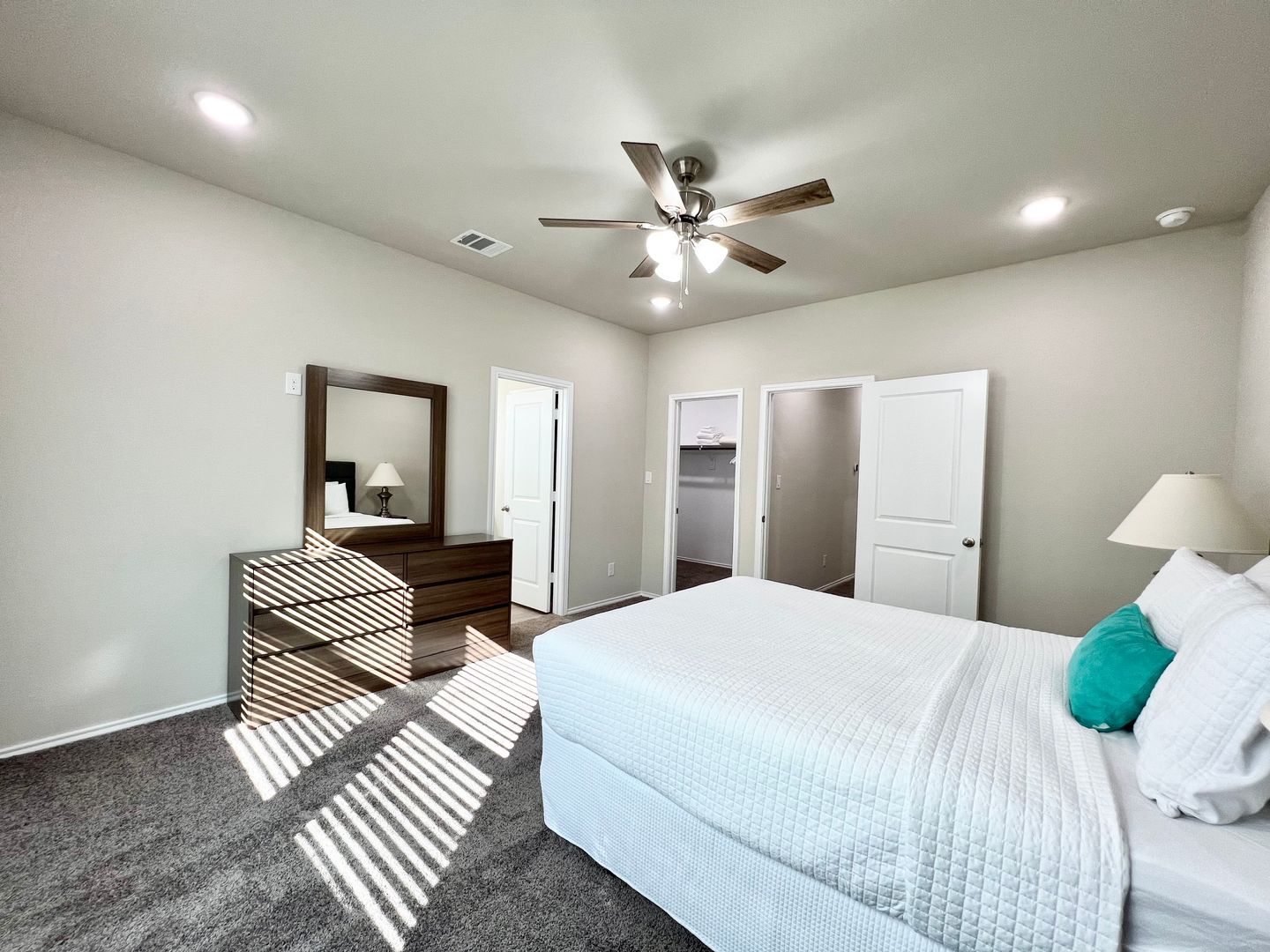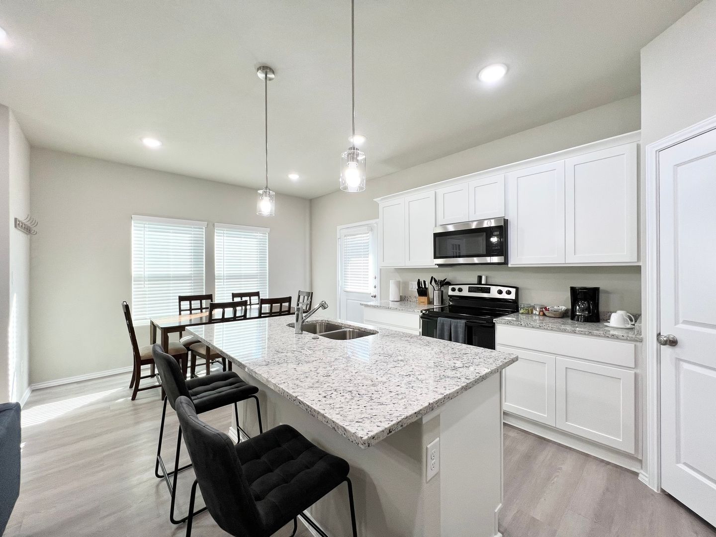 Welcome to this brand-new duplex in the heart of Burleson, featuring a beautifully designed 3-bedroom, 2.5-bath layout. This home boasts a thoughtful floor plan with modern finishes, granite countertops, luxury vinyl plank flooring, and stylish details throughout. Upstairs, you’ll find two spacious bedrooms with plush carpeting and generous closet space. The primary suite offers a large walk-in closet and an ensuite bathroom complete with a double vanity and private water closet.