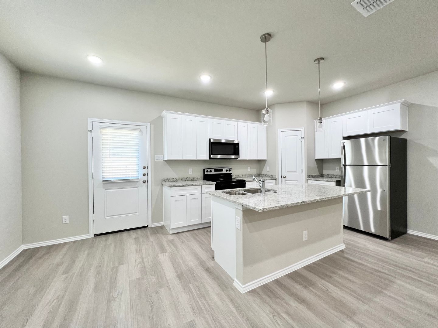 Welcome to this brand-new duplex in the heart of Burleson, featuring a beautifully designed 3-bedroom, 2.5-bath layout. This home boasts a thoughtful floor plan with modern finishes, granite countertops, luxury vinyl plank flooring, and stylish details throughout. Upstairs, you’ll find two spacious bedrooms with plush carpeting and generous closet space. The primary suite offers a large walk-in closet and an ensuite bathroom complete with a double vanity and private water closet. Set on a spacious lot with plenty of green space, the property provides a peaceful and inviting atmosphere. Residents will enjoy convenient access to nearby shopping, dining, schools, and major employers, along with easy connectivity to Fort Worth and surrounding areas via nearby highways. With its contemporary design and prime location, 3501 E Renfro St delivers comfort, convenience, and exceptional modern living in Burleson.